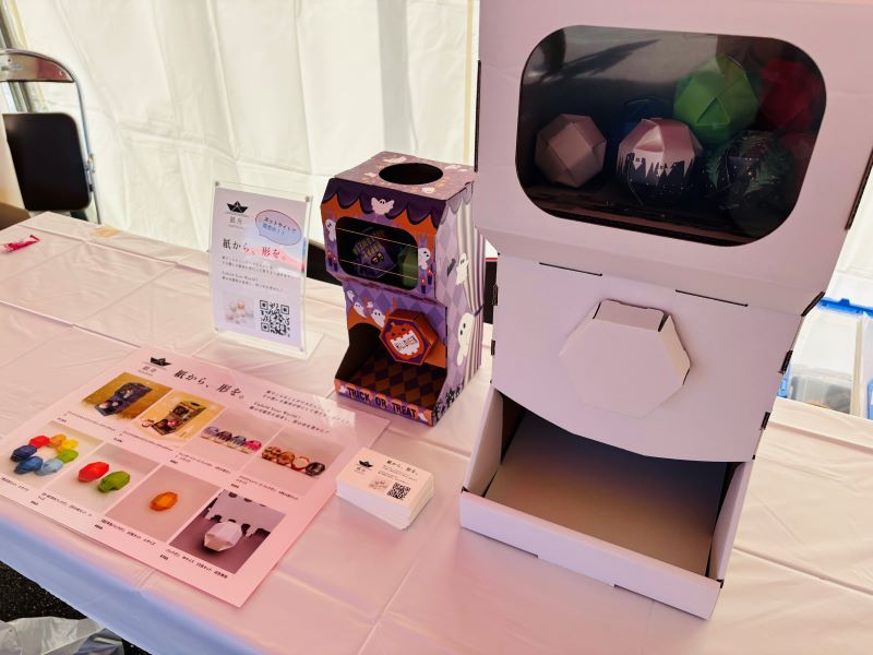今年は、当社グループ会社である石塚王子ペーパーパッケージング株式会社の紙容器事業の紙パックを使用した、パックポン(紙カプセル)のガチャガチャ体験を行いました。「可愛い」「開けるまで中身が見えなくて面白い」など、様々なご感想をいただきました。