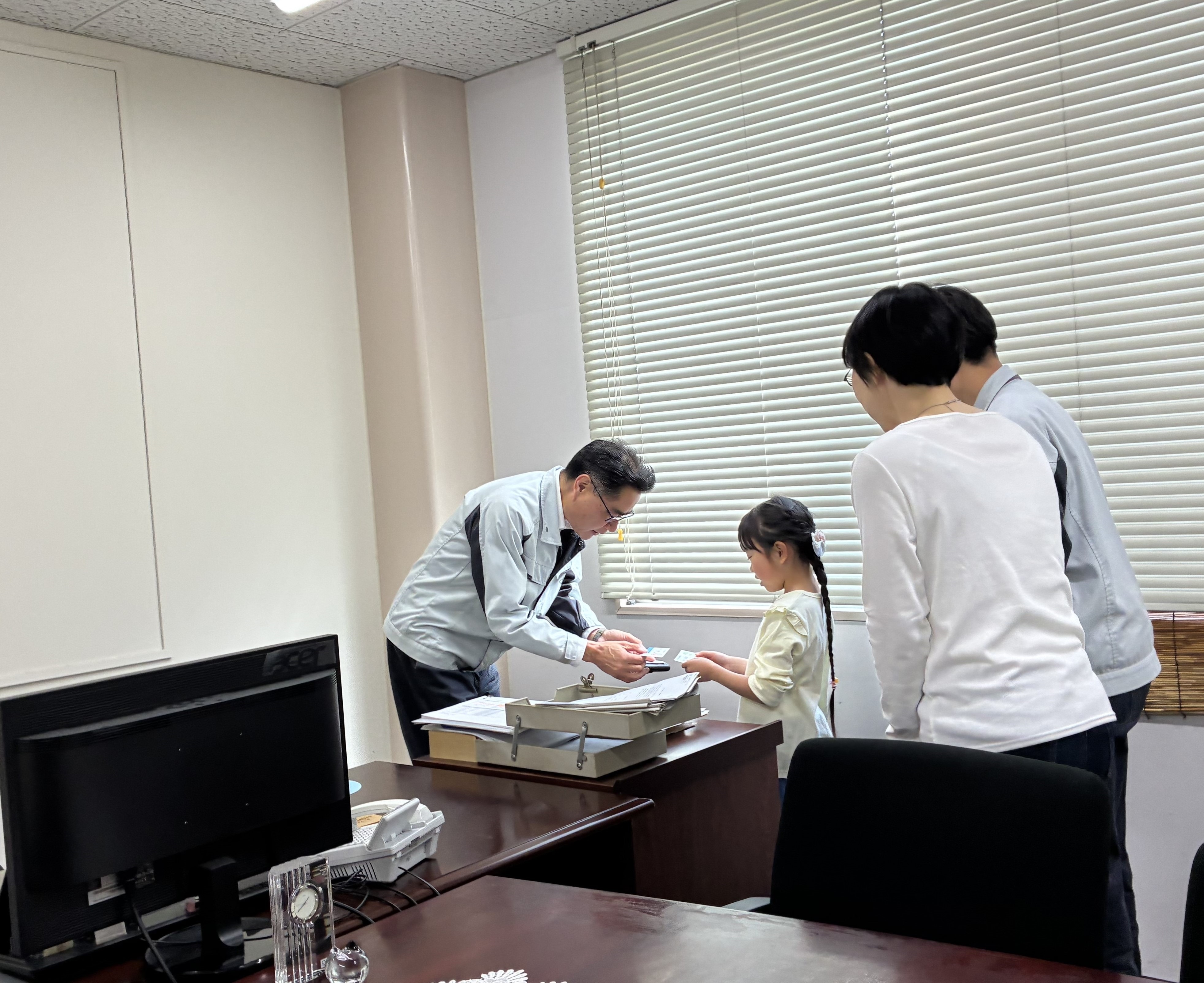 ファミリーデーでは、ワークショップ、名刺交換、社長室での記念撮影、従業員の働く職場への見学を行い、盛りだくさんの内容となりました。